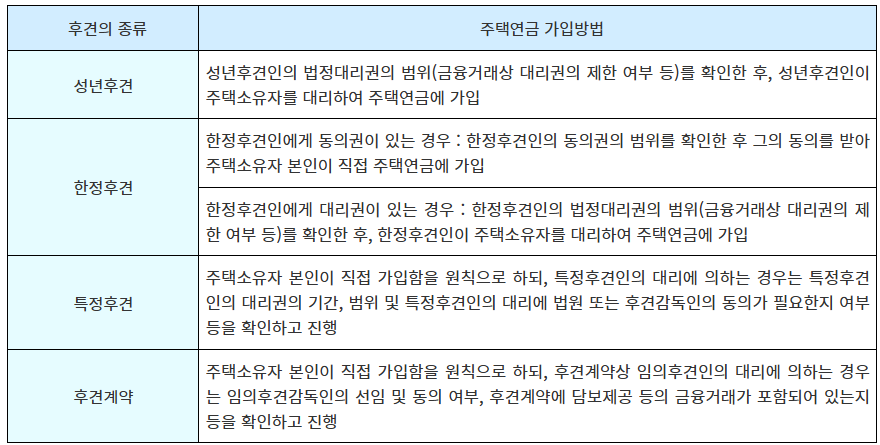 후견인의 권한 범위에 따라 가입 방식은 달라지지만, 적절한 후견 절차를 거친 경우 후견인이 어르신을 대신해 주택연금 가입을 진행할 수 있습니다. 즉, 치매가 있다고 해서 주택연금을 반드시 포기해야 하는 것은 아니며, 상황에 맞는 제도를 활용하면 충분히 가입이 가능합니다.